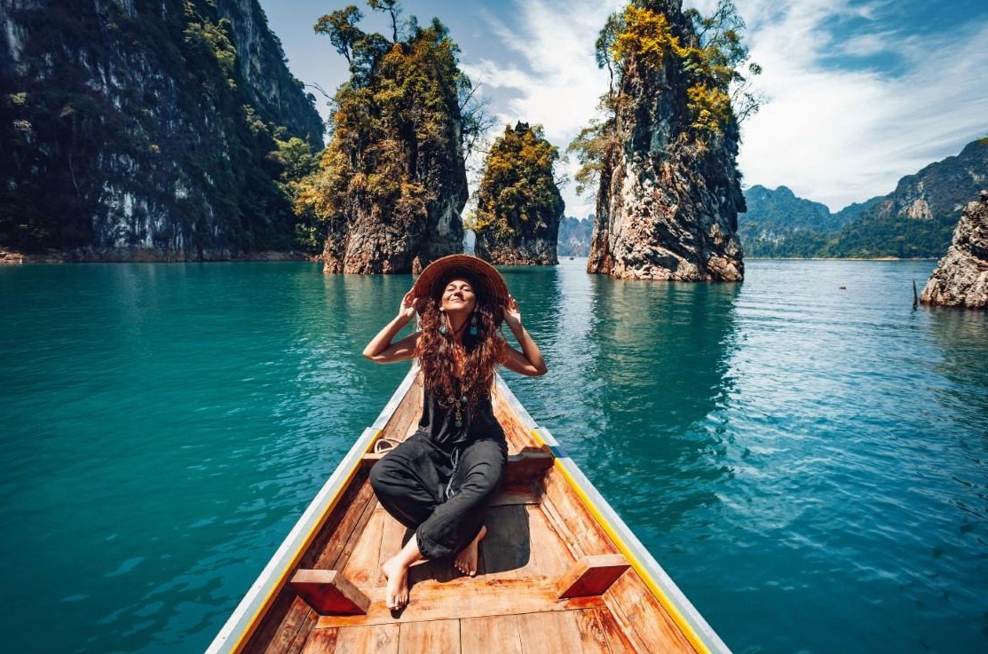 Femme sur une barque en Thailande