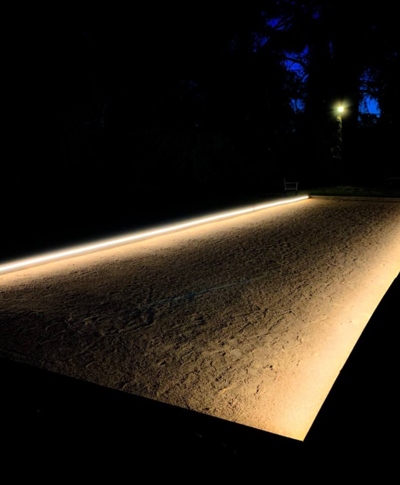 Un terrain de petanque la nuit
